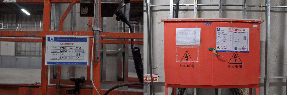 為降低因用電故障影響日常生產(chǎn)工作,臨時用電采用兩路電源供電,放射式配電,平層設(shè)置多個二級配電箱,滿足規(guī)范使用要求。