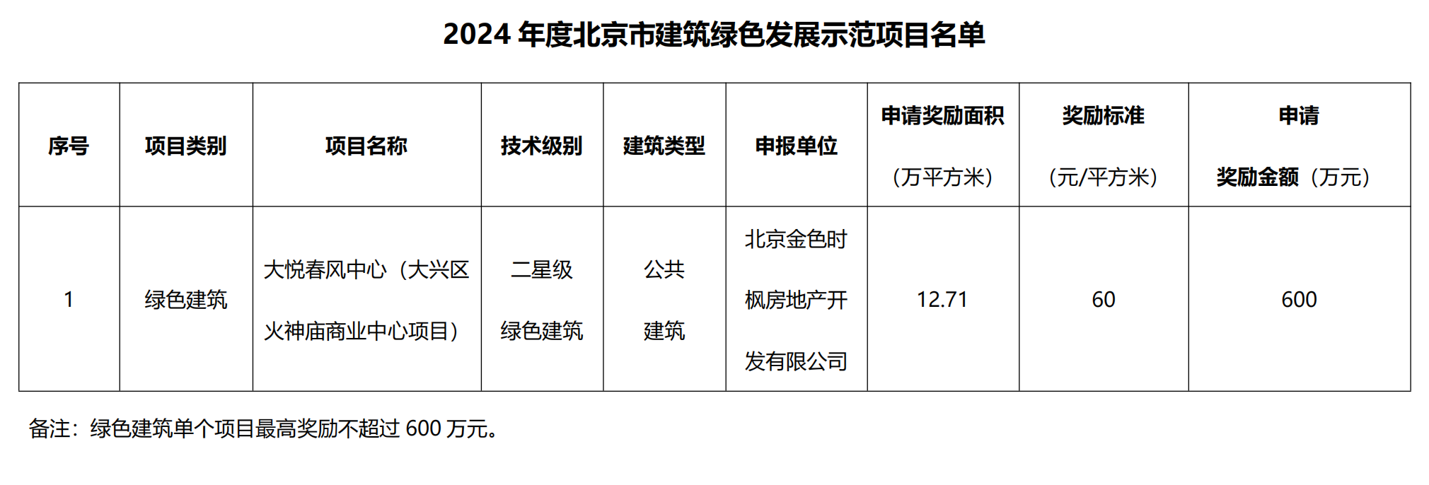 近日,由中國(guó)建技承擔(dān)咨詢(xún)的北京大興大悅春風(fēng)中心項(xiàng)目通過(guò)了北京市綠色建筑標(biāo)識(shí)獎(jiǎng)勵(lì)資金審核,獲得了封頂600萬(wàn)的市級(jí)資金獎(jiǎng)勵(lì),成為北京市2024年唯一一個(gè)獲得市級(jí)綠色建筑獎(jiǎng)勵(lì)資金的項(xiàng)目。