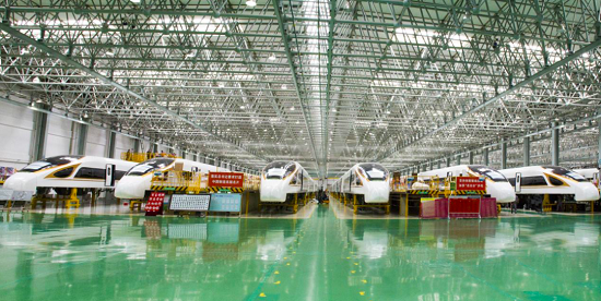 ▲中車長客“復(fù)興號”中國標(biāo)準(zhǔn)動車組裝配現(xiàn)場