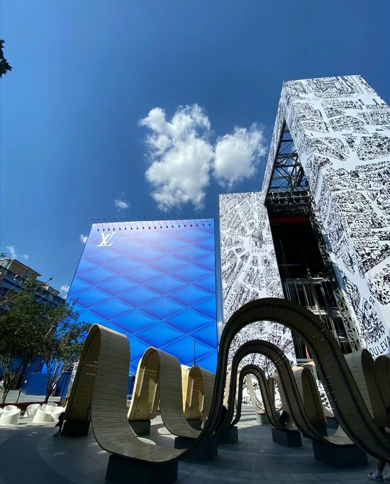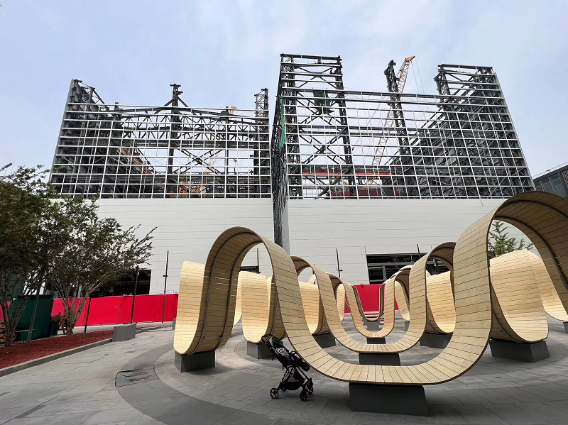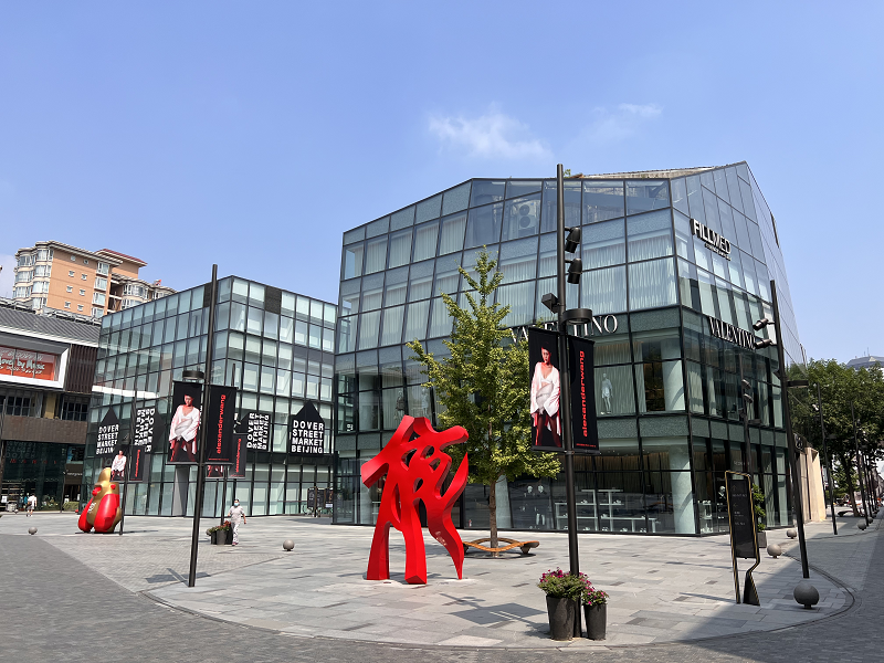 本項目施工內(nèi)容包括2棟樓的拆除、重建、加固、機(jī)電工程、幕墻、電梯安裝與裝飾裝修。項目位于三里屯繁華鬧市區(qū),東臨使館區(qū)、南連南區(qū)商業(yè)區(qū)、西和北側(cè)為住宅區(qū),周邊商業(yè)需正常運(yùn)營,致使白天物料與大型車輛運(yùn)輸受限,運(yùn)輸需在夜間進(jìn)行,因此項目實施只能在非營業(yè)時間開展,且吊裝作業(yè)僅能于每日上午進(jìn)行。此項目對現(xiàn)場安全文明施工要求頗高,同時涉及市政管線、綠化移植、夜間施工、施工占道等大量需與政府部門溝通協(xié)調(diào)之事,且現(xiàn)場無臨時設(shè)施用地。