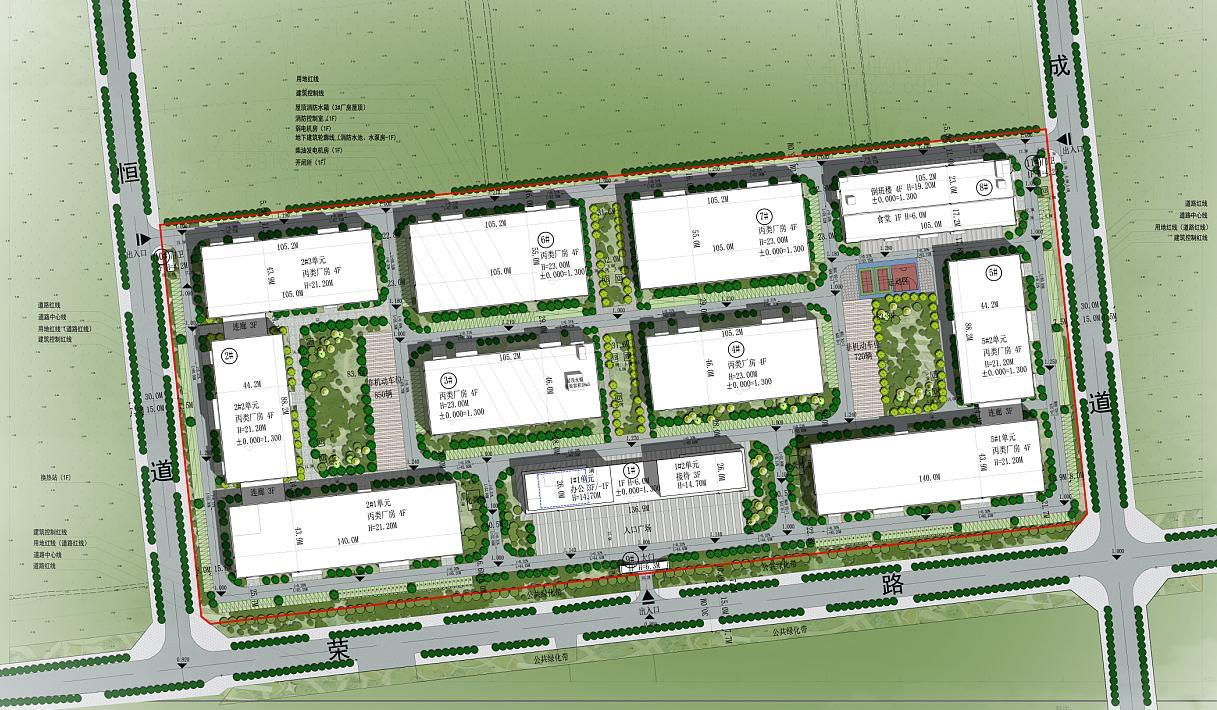 蘆臺(tái)農(nóng)業(yè)產(chǎn)業(yè)融合示范基地項(xiàng)目,位于蘆臺(tái)經(jīng)濟(jì)開(kāi)發(fā)區(qū)富恒道東側(cè)、榮錦路南側(cè)、富成道西側(cè)、榮昌路北側(cè),是一個(gè)集設(shè)計(jì)與施工總承包于一體的發(fā)展項(xiàng)目。該項(xiàng)目的用地布局規(guī)整,形狀接近正方形,東西向長(zhǎng)約545米,南北向?qū)捈s246米。項(xiàng)目南側(cè)緊鄰榮昌路,規(guī)劃有一條10米寬的城市公園綠地,周邊建筑數(shù)量有限。項(xiàng)目的主要建設(shè)內(nèi)容包括辦公樓、標(biāo)準(zhǔn)廠房、倒班樓、食堂、設(shè)備房、門(mén)衛(wèi)管理用房等,共計(jì)11棟建筑。其中,包含6棟新建的四層丙類標(biāo)準(zhǔn)廠房、1棟新建的三層辦公樓(局部帶有地下一層)、1棟新建的四層倒班樓(首層設(shè)有食堂)以及3棟單層門(mén)衛(wèi)房。此外,新建的附屬配套工程涵蓋了管網(wǎng)工程、道路硬化、綠化工程等。