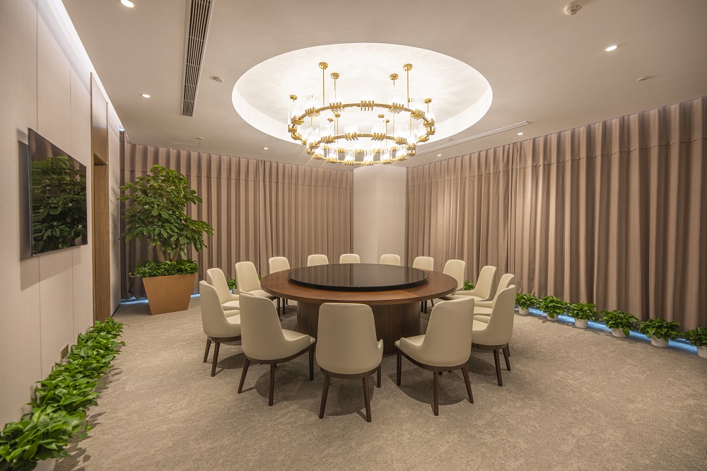 本次改造根據使用單位的需求,在維持建筑外立面和室外景觀的前提下,對原有建筑進行了平面重新布局及裝飾裝修,并根據新的使用功能對機電系統(tǒng)進行了調整。改造后的建筑滿足現(xiàn)行的建筑標準規(guī)范,并滿足使用方的現(xiàn)代辦公需求。以“一級央企、國內一流、具有國際影響力”的大國企業(yè)總部形象服務全國并面向國際舞臺,所以重點打造莊重、現(xiàn)代、統(tǒng)一、大氣、低調、品質的空間特點,使辦公空間代表大國形象、展示央企文化;延續(xù)傳統(tǒng)國企表現(xiàn)出的典型特征,提升內部空間整體品質。圍繞設計理念構思方案,把握規(guī)劃布局的宏觀標準,定位企業(yè)形象,提煉設計手法,營造空間氛圍;對大廳、會議、報告廳、會客、餐廳、辦公等重點空間深化設計匹配一級央企的總部形象。