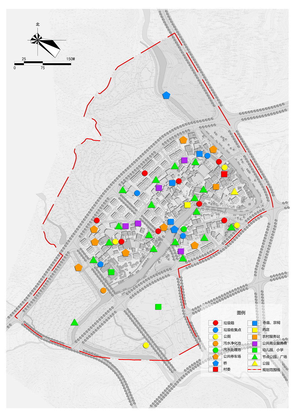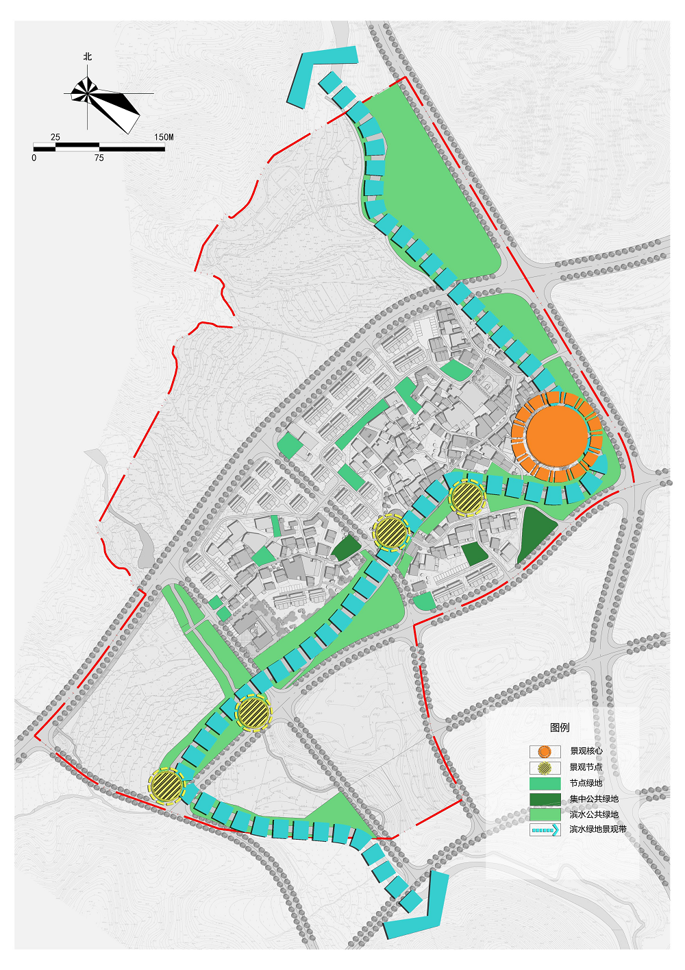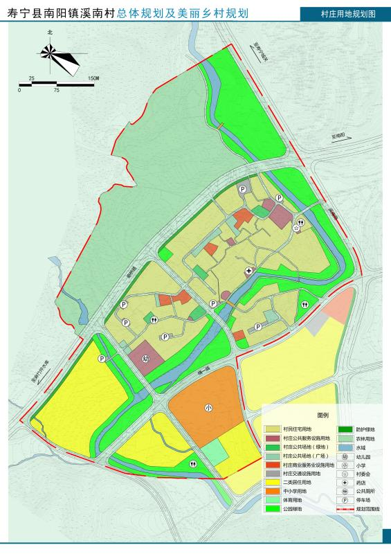 (1)結(jié)構(gòu):村莊建設(shè)發(fā)展區(qū)規(guī)劃形成“一核、一帶、五片、多點(diǎn)”——?一核:以村委、村民文化活動(dòng)公園所形成的公共核心;一帶:沿溪南村傍村而過的溪南溪所形成的濱水綠地景觀帶;五片:①依據(jù)建設(shè)情況劃分成的北部村莊居住片區(qū);②中部村莊居住片區(qū);③南部村莊居住片區(qū)與村;④西南部城市居住片區(qū);⑤城市公共服務(wù)片區(qū)