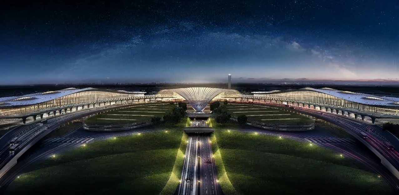 合肥新橋國(guó)際機(jī)場(chǎng)T2航站樓總建筑面積約36.98萬(wàn)平方米,采用“雙港灣+雙L”的建筑構(gòu)型,主樓面寬約400米、進(jìn)深約180米。南、北兩側(cè)指廊寬42米,為國(guó)內(nèi)候機(jī)指廊;中指廊寬54米,為國(guó)際候機(jī)指廊。主體結(jié)構(gòu)為鋼筋混凝土框架,屋頂為大跨度空間鋼結(jié)構(gòu)體系。